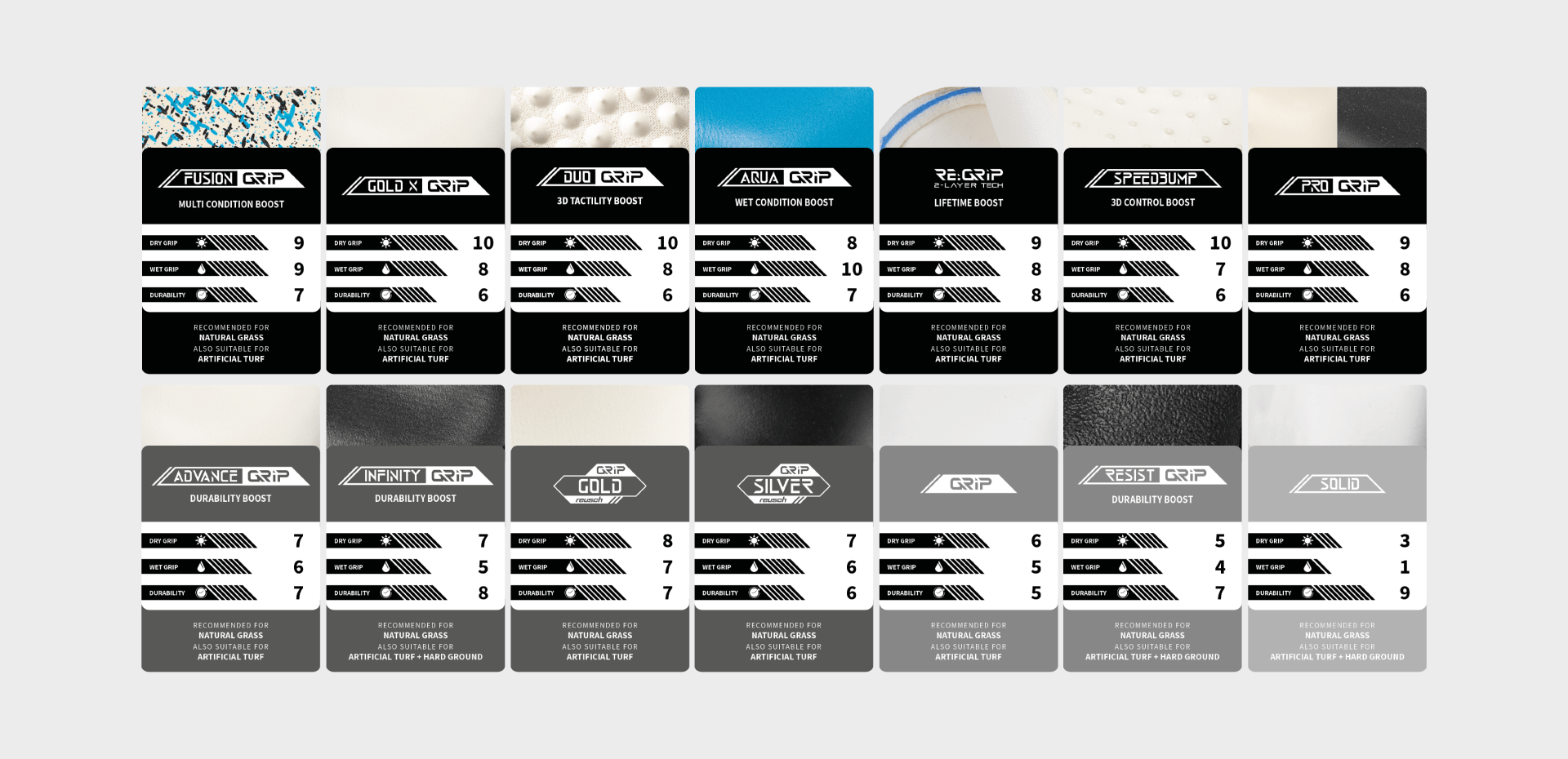 Each palm foam features a unique blend of Dry Grip, Wet Grip, and Durability boosts, ensuring optimal performance in any condition.