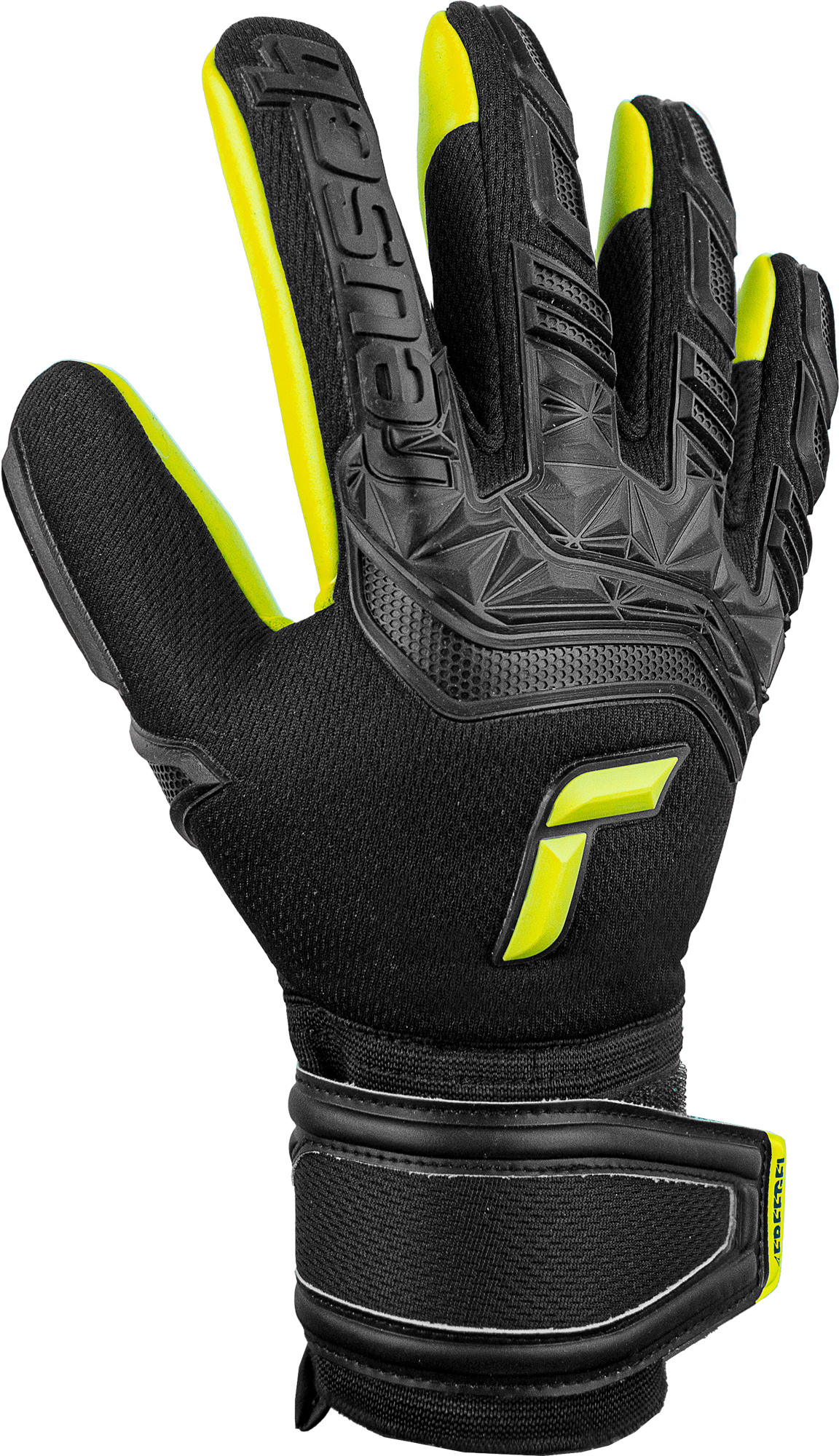 Great choice for young keepers looking for reliable protection and good grip! This Attrakt model features a Freegel silicone application on the backhand and Finger Support protection on all five fingers to offer reliable prevention from finger injuries. The glove is equipped with the new Reusch Grip Silver latex. Thanks to its significantly increased volume and softness this German-made latex guarantees outstanding impact absorption, good grip and reliable abrasion resistance. Check it out in the special black and lime green design!Material Composition