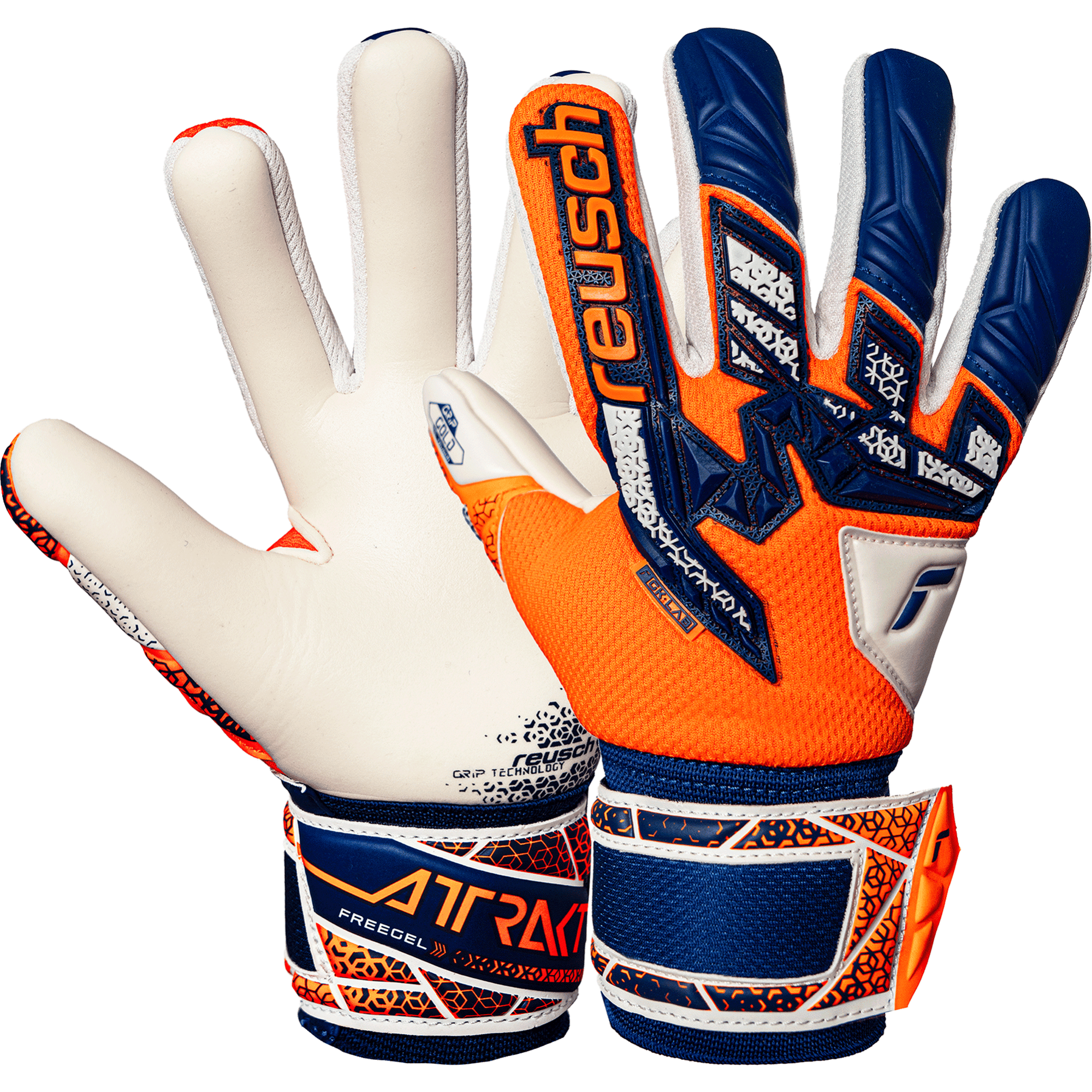 The Attrakt Gold NC Junior features our Reusch Grip Gold Latex. This professional match foam is based on the exclusive Reusch Grip latex formula and offers a premium grip in both dry and wet conditions as well as reliable durability. The Gold quality includes the highest percentage of natural latex, boosting the overall grip properties for uncompromised performances. The ergonomic construction of this glove offers maximum comfort thanks to the snug-fitting Negative Cut and the elastic cuff with a full strap for improved stability.Material Composition
