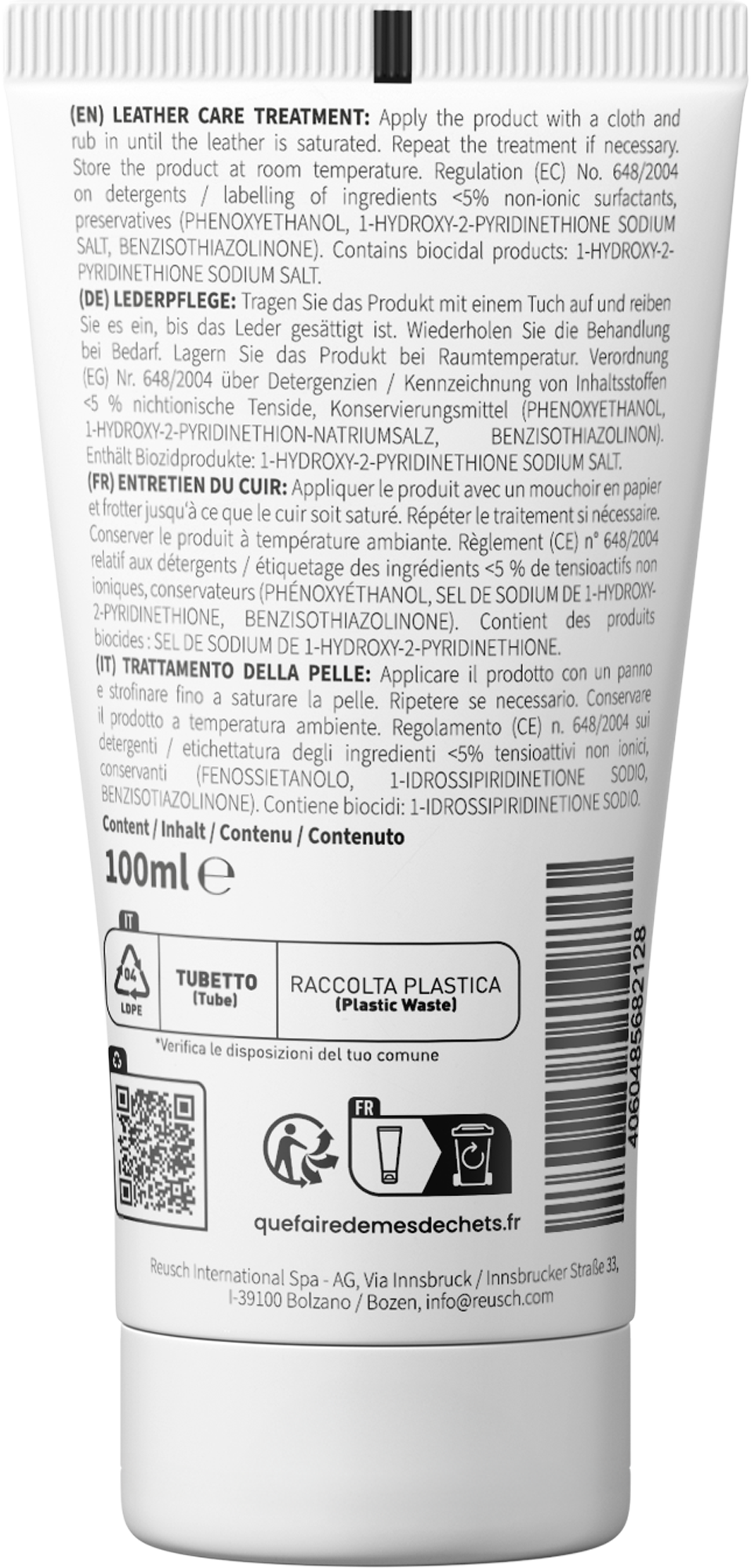 Nourishes and Protects Smooth Leather with Long-Lasting Effect.Leather Care Treatment: Apply the product with a cloth and rub in until the leather is saturated. Repeat the treatment if necessary. Store the product at room temperature. Regulation (EC) No. 648/2004 on detergents / labelling of ingredients <5% non-ionic surfactants, preservatives (Phenoxyethanol, 1-Hydroxy-2-Pyridinethione Sodium Salt, Benzisothiazolinone). Contains biocidal products: 1-Hydroxy-2-Pyridinethione Sodium Salt.